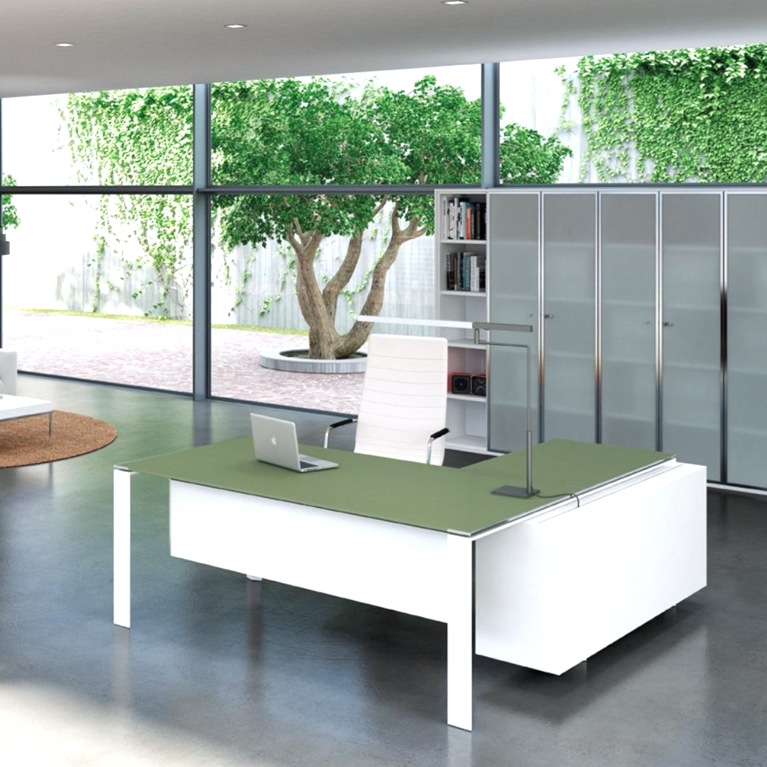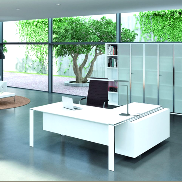 X7 meubilair van Quadrifoglio, Italiaans design voor directiekamer en vergaderruimte. Vakmanschap in metaalbewerking, zoals de fraaie chromen of witte poten (in 4-poots OPEN of ringvorm CLOSED), met 10mm dunne zwevende geprofileerde bladen van melamine, glas of gelakt hout. Levertijd 4-6 weken.