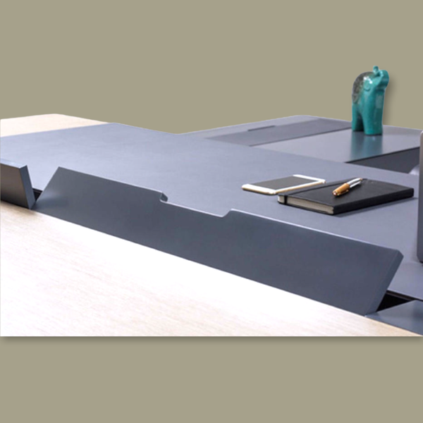 - Blad: MDF mat en gepolijste afwerking. 4mm kunstlederen blad.