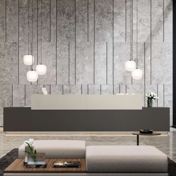 De Z1 balie wordt gekenmerkt door strakke en elegante lijnen, die stijl en functionaliteit combineren in een modulair product.