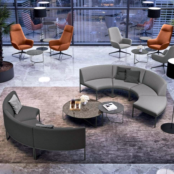 Maak uw ontvangstruimte extra aantrekkelijk met de praktische Astro modules van het Italiaanse Quadrifoglio. Keuze uit vierkant of gebogen zitelementen uitgevoerd in comfortabel en vormvast koudschuim op duurzaam berken multiplex met een metalen frame.
